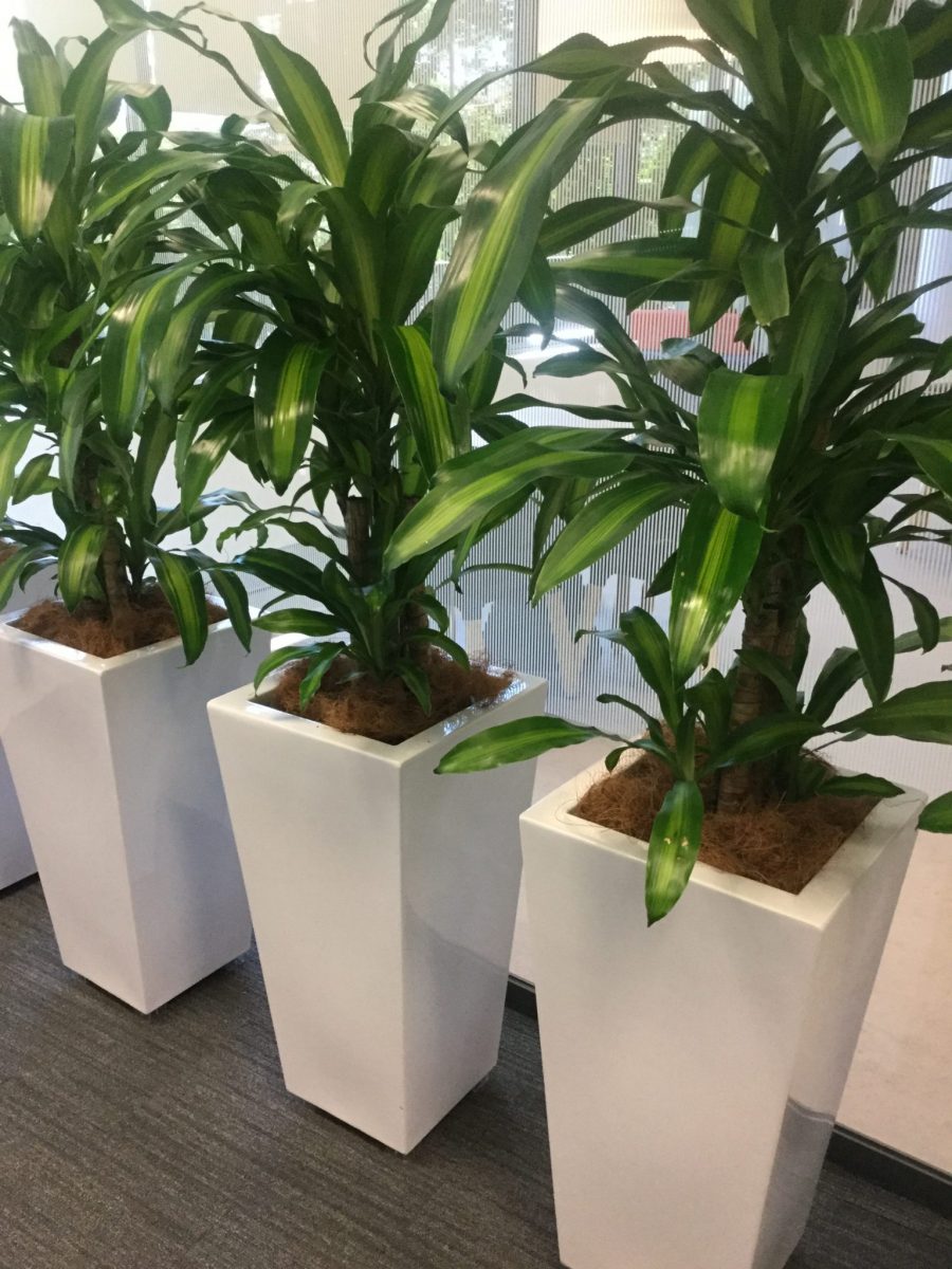 Dracaena ‘Janet Craig’ is one of the most popular plants used in homes and offices today. Native to tropical Africa, Dracaena ‘Janet Craig’ has dark green, sword- shaped, shiny leaves that cascade downward gently from the stalk. It is usually grown with 3-5 stalks per pot to achieve a thick tropical appearance and tolerates low to medium light levels and considerable dryness. Dracaena Janet Craig is extremely versatile and can be used as table top plants, bushy floor plants or in vertical gardens.