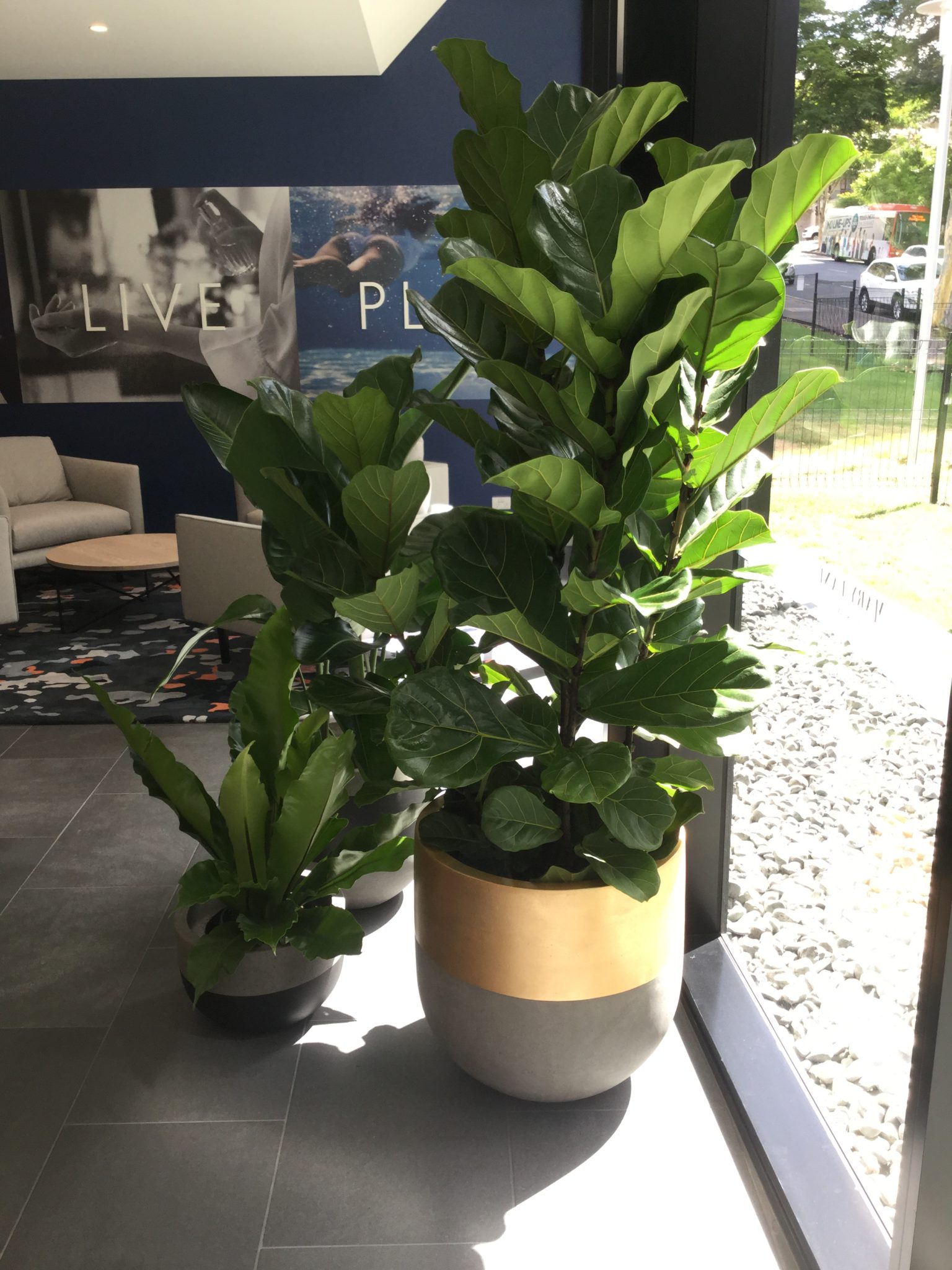 The most popular medium to large tree with lush, deep veined, sculptural violin-shaped leaves. The stiff, waxy leaves can show a grey-green colour underneath and are grown on single or multi-stemmed trunks.