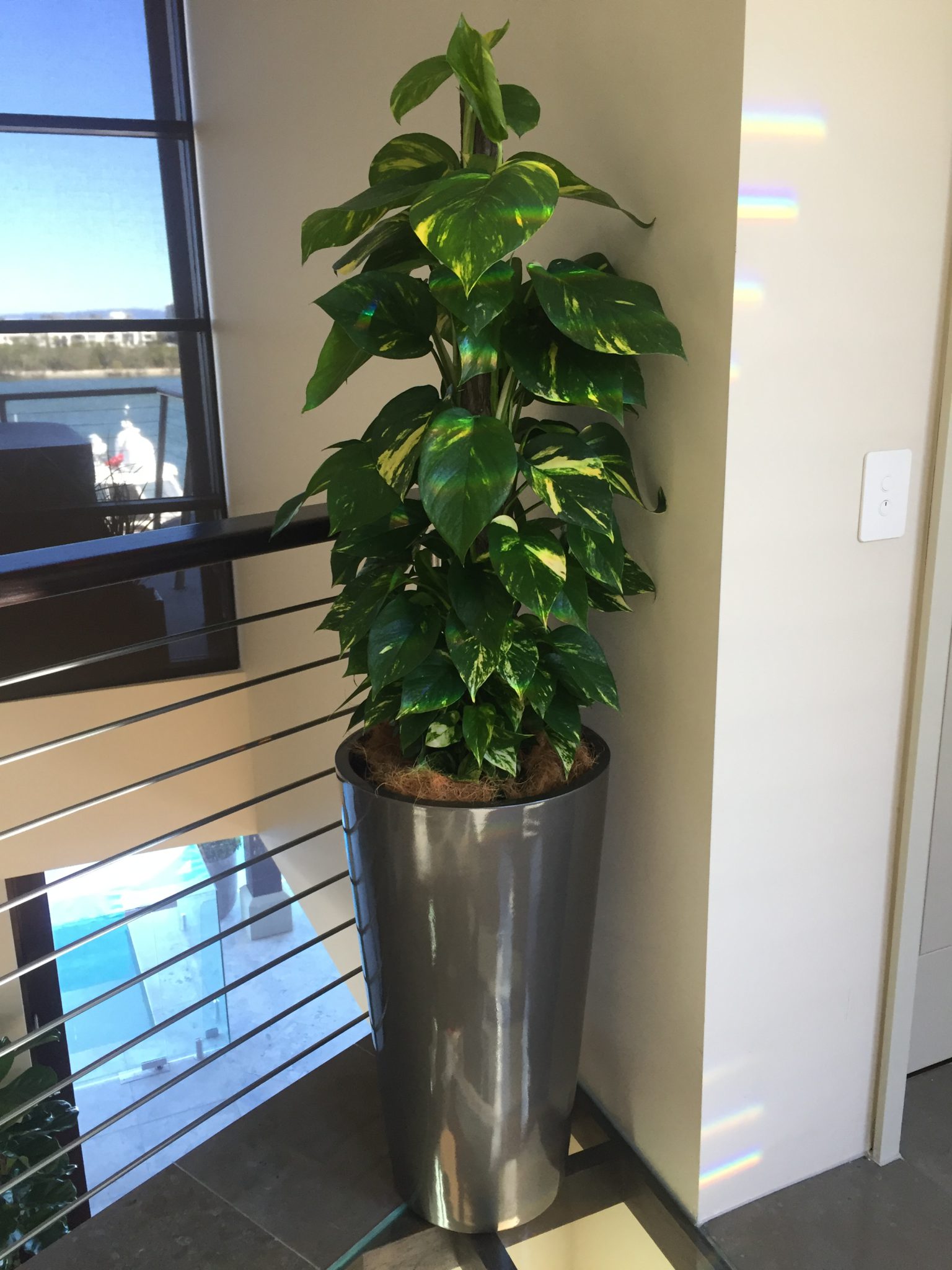 It’s an attractive climbing evergreen vine that’s endemic to the warmer and more humid parts of the world such as Asia, Northern Australia and the Pacific. The plants climb and adhere to surfaces using aerial roots, however for indoor use, can be grown on totems or used in pots to give a cascading appearance. It’s usually selected for its variegated light green foliage.